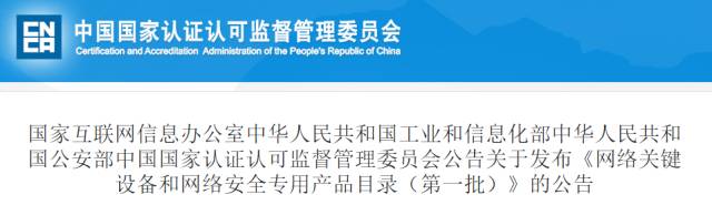 關于發(fā)布《網(wǎng)絡關鍵設備和網(wǎng)絡安全專用產(chǎn)品目錄(第一批)》的公告